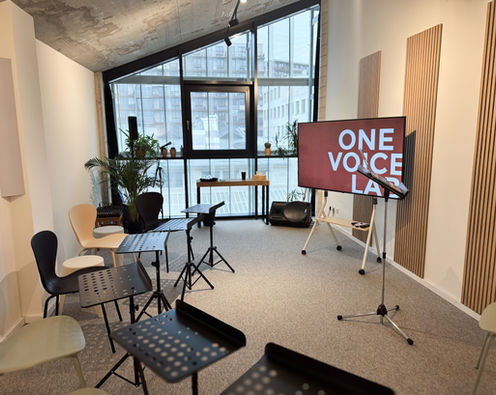 Ob Gesang, Rap, Voiceover oder Podcast – du bringst Mikrofon, Interface und Laptop mit, wir stellen dir die passende Umgebung: trocken, ruhig und ideal für Gesangsaufnahmen.